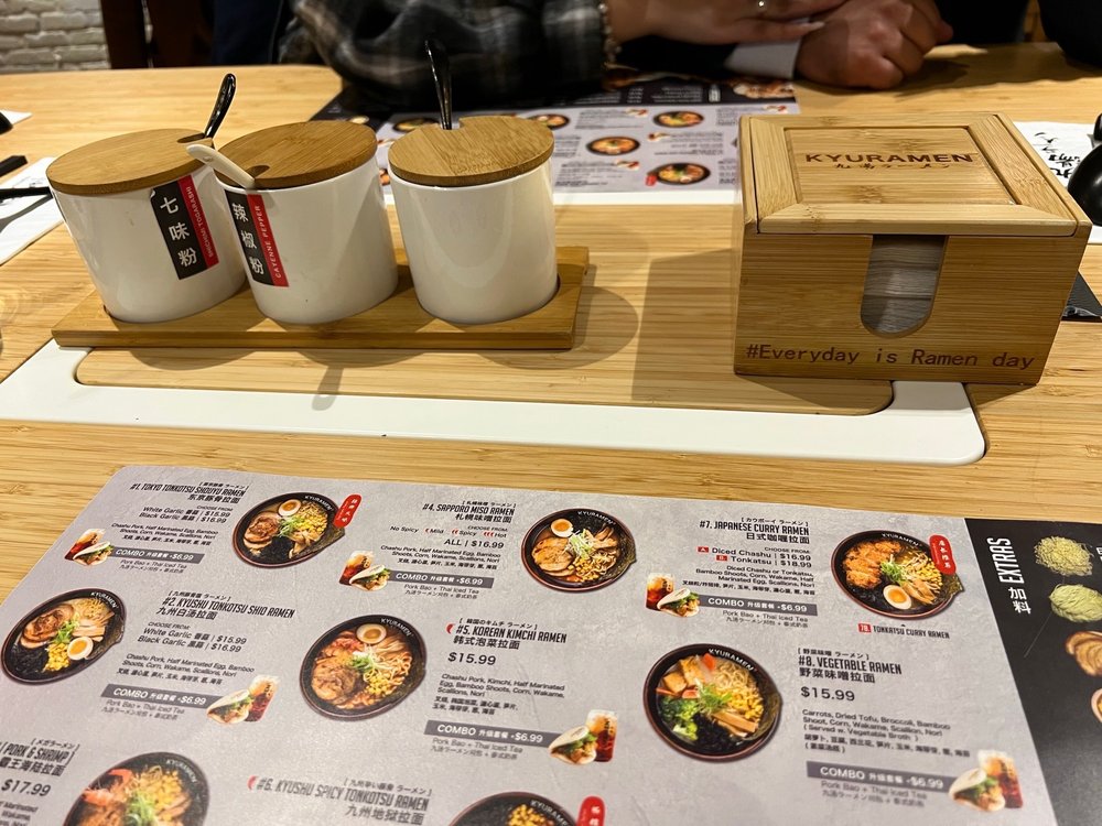 Kyuramen - Flushing is a trendy and intimate restaurant in Flushing, NY, offering a unique fusion of ramen and burgers. The menu features soy-free and vegan options, making it suitable for various dietary preferences. Customers praise the clean environment, kind wait staff, and quick service. The Thai ice tea is a standout beverage, while dishes like mega ramen, popcorn chicken, and Katsuobushi Pork Ramen receive high praise for their flavors and quality. The restaurant's aesthetic layout, cozy ambiance, and excellent service create a pleasant dining experience. With expanded seating options and a variety of menu items, Kyuramen - Flushing is a great choice for satisfying ramen cravings in the area.