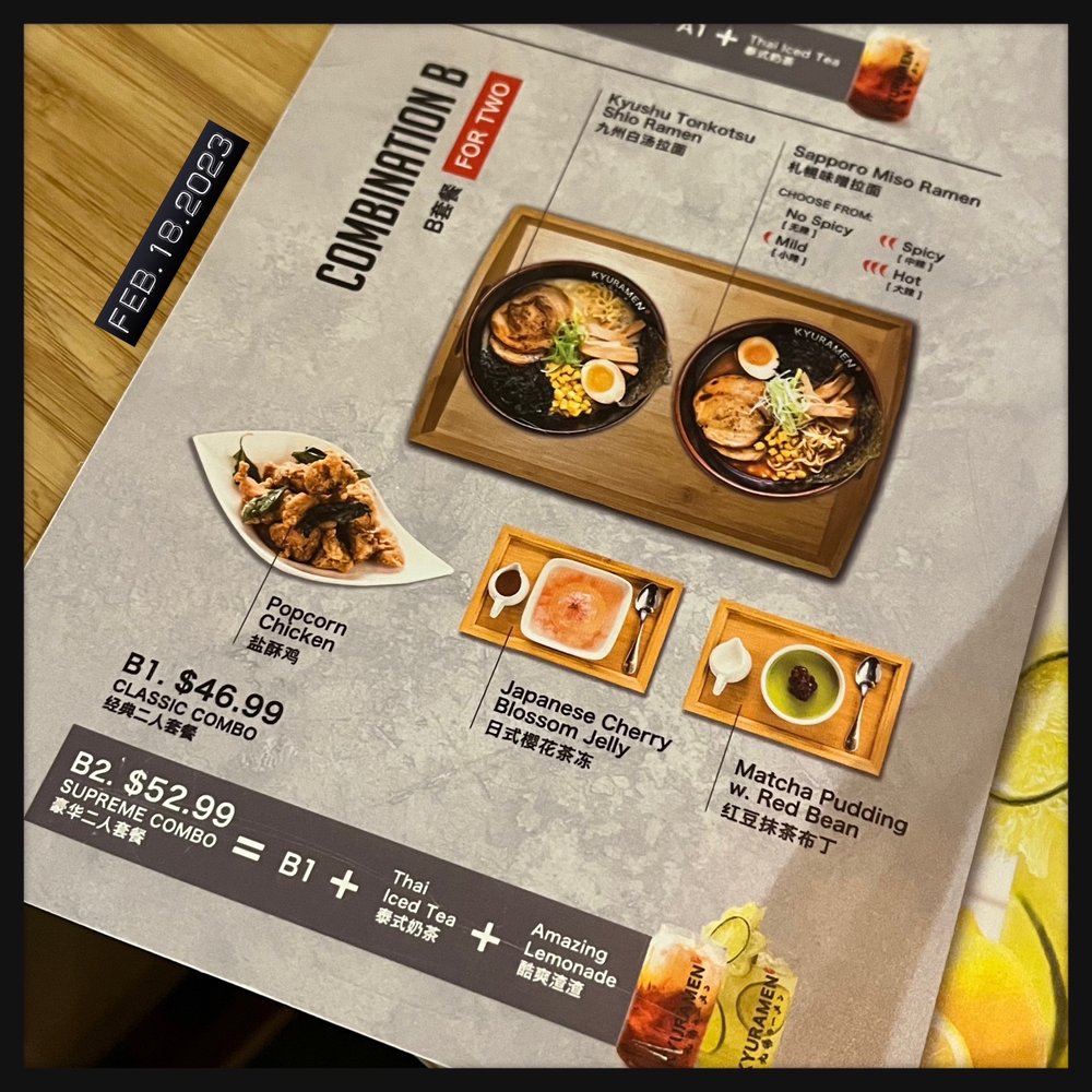 Combo includes:Tokyo Tonkotsu Shouyu Ramensapporo miso ramenpopcorn chickenjapanese cherry blossom jellymatcha pudding w. red bean